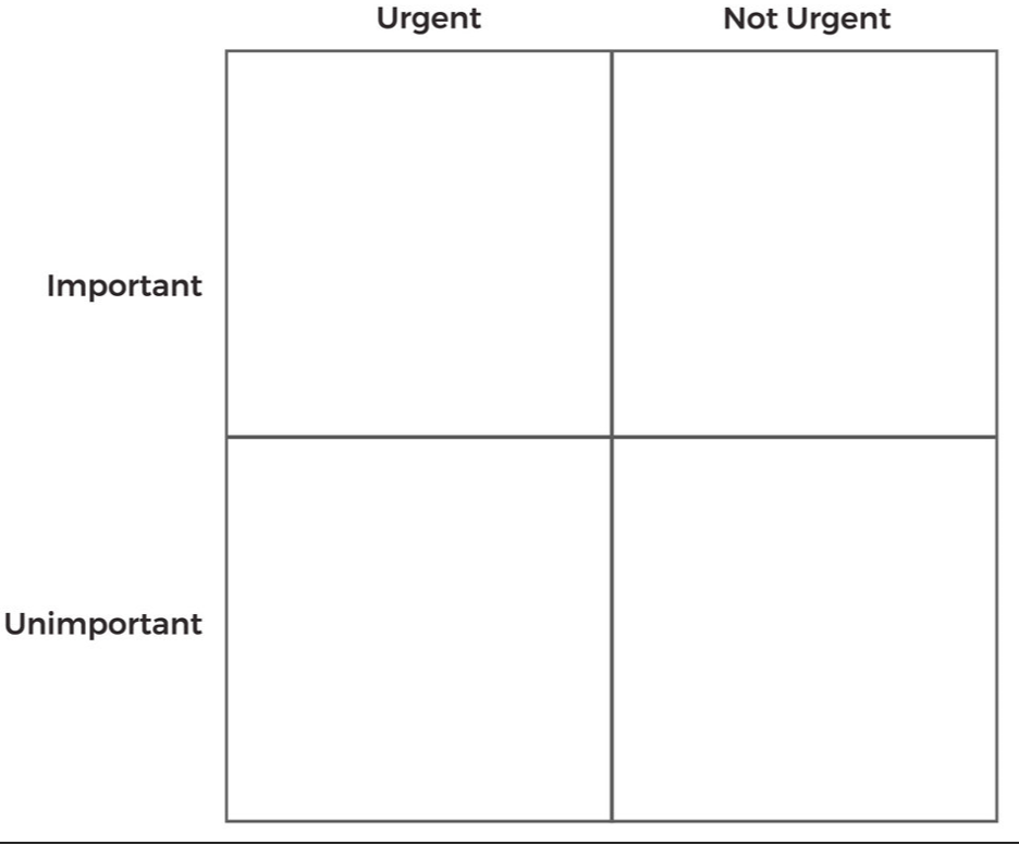 Give it a try! Write down what you are trying to get done this week and place each task/goal into one of the four spaces on the matrix. Where is your time going?